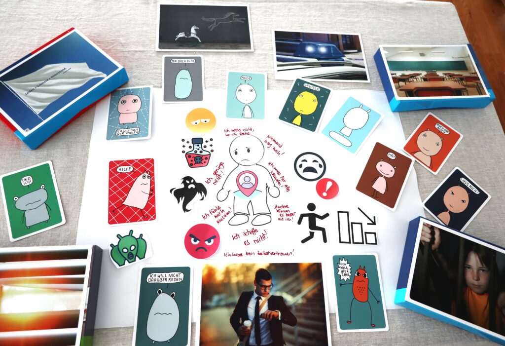 Beim «Intuitiv Moodboard» trifft das 100% zu. Ein Moodboard ist ein visuelles Stimmungsbild Ihrer Gefühle und Emotionen, einer Situation von heute, der Zukunft oder der Vergangenheit. Dabei werden Ziele, Wünsche, positive wie negative Erlebnisse, Ängste, Stärken, Talente, Blockaden usw. zum Ausdruck gebracht. Unterstützungsmaterialien wie diverse Bild- und Emotionskarten, Figuren, bedruckte Glaubens- und Kraftsätze, Symbole zum Kleben, Legen, Malen, Zeichnen, Leimen und Stellen, sollen Ihnen dabei helfen, Ihrem Unterbewusstsein Ausdruck zu verleihen. Sie entscheiden dabei selbst, welche Materialien Sie dafür verwenden. Sehr gerne dürfen Sie auch eigene Symbole, Sprüche oder Bilder mitbringen, um das Bild so authentisch wie möglich zu gestalten.