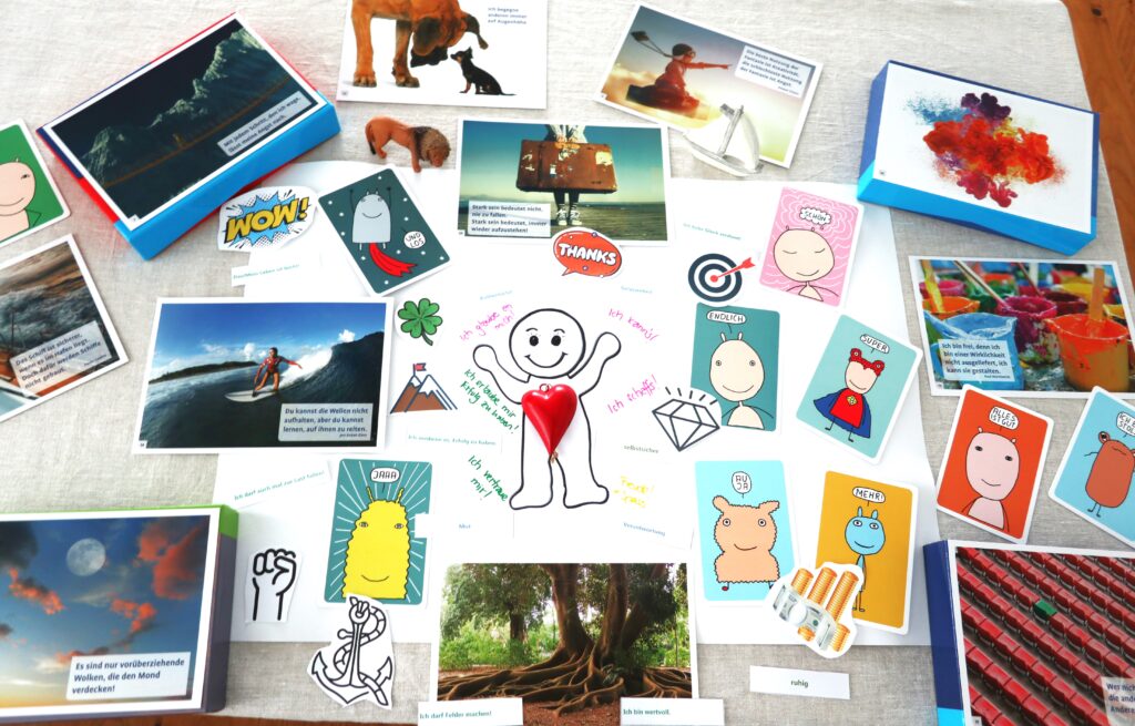 - Mittels den Hilfsmaterialien drücken Sie das aus, was Sie vielleicht blockiert, Ihnen Angst bereitet, Ihnen viel Energie und Kraft raubt – was immer es sein mag. Es wird sich das zeigen, was reif ist, an die Oberfläche zu kommen.